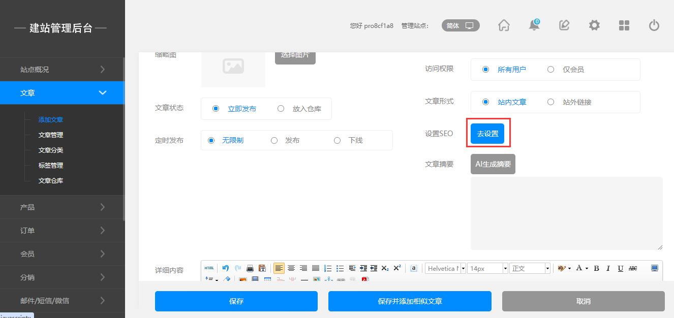 提示:必须要先填写文章详情内容,才能使用AI提取SEO功能,AI使用次数是根据免费的额度来定,超过需要单独购买